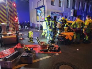 Bad Salzuflen (dhob). Die Freiwillige Feuerwehr Bad Salzuflen ist am frühen Dienstagmorgen (04.06.2024) zu einem schweren Verkehrsunfall zur Sylbacher Straße alarmiert worden. Das automatische Notrufsystem eines Mercedes hatte gegen drei Uhr nachts ausgelöst, nachdem der Wagen unweit der Ostwestfalenstraße gegen einen Baum geprallt war. Da die Leitstelle des Herstellers keinen Kontakt mit dem Fahrer aufnehmen konnte, wurden die Einsatzkräfte aus Feuerwehr, Rettungsdienst und Polizei zur Unfallstelle gerufen. Der Fahrer war noch vor Eintreffen der Helfer aus dem Wagen getürmt. Spuren im Fahrzeug ließen jedoch den Rückschluss zu, dass er sich bei dem Unfall verletzt haben muss. Mit mehreren Fahrzeugen und mit Hilfe von Wärmebildkameras wurde das Umfeld der Einsatzstelle nach dem vermissten Fahrer abgesucht. Auch die Drohnenstaffel der Feuerwehr Detmold unterstützte die Suche aus der Luft. Parallel wurden auch die örtlichen Krankenhäuser abtelefoniert und informiert. Leider blieben alle Maßnahmen ohne Erfolg und der Unfallfahrer war trotz intensivster Suche nicht aufzufinden. Nach rund drei Stunden konnte die Feuerwehr wieder einrücken und übergab die Einsatzstelle an die Polizei für weitere Maßnahmen. Insgesamt waren etwa 40 Einsatzkräfte aus Polizei, Feuerwehr und Rettungsdienst vor Ort. Die Sylbacher Straße war für die Unfallaufnahme rund drei Stunden gesperrt.